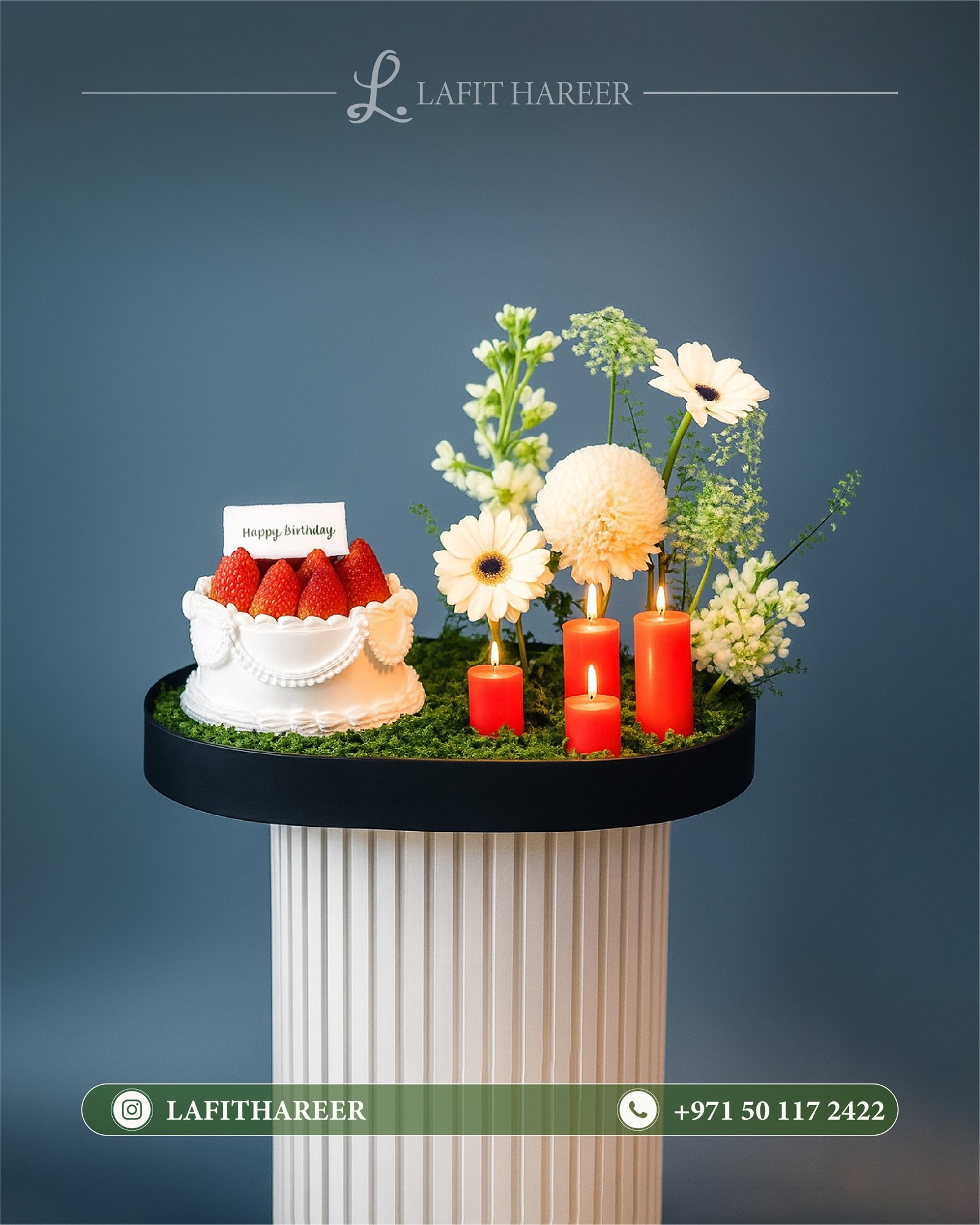 كيكة الفراولة مع ورد وشموع