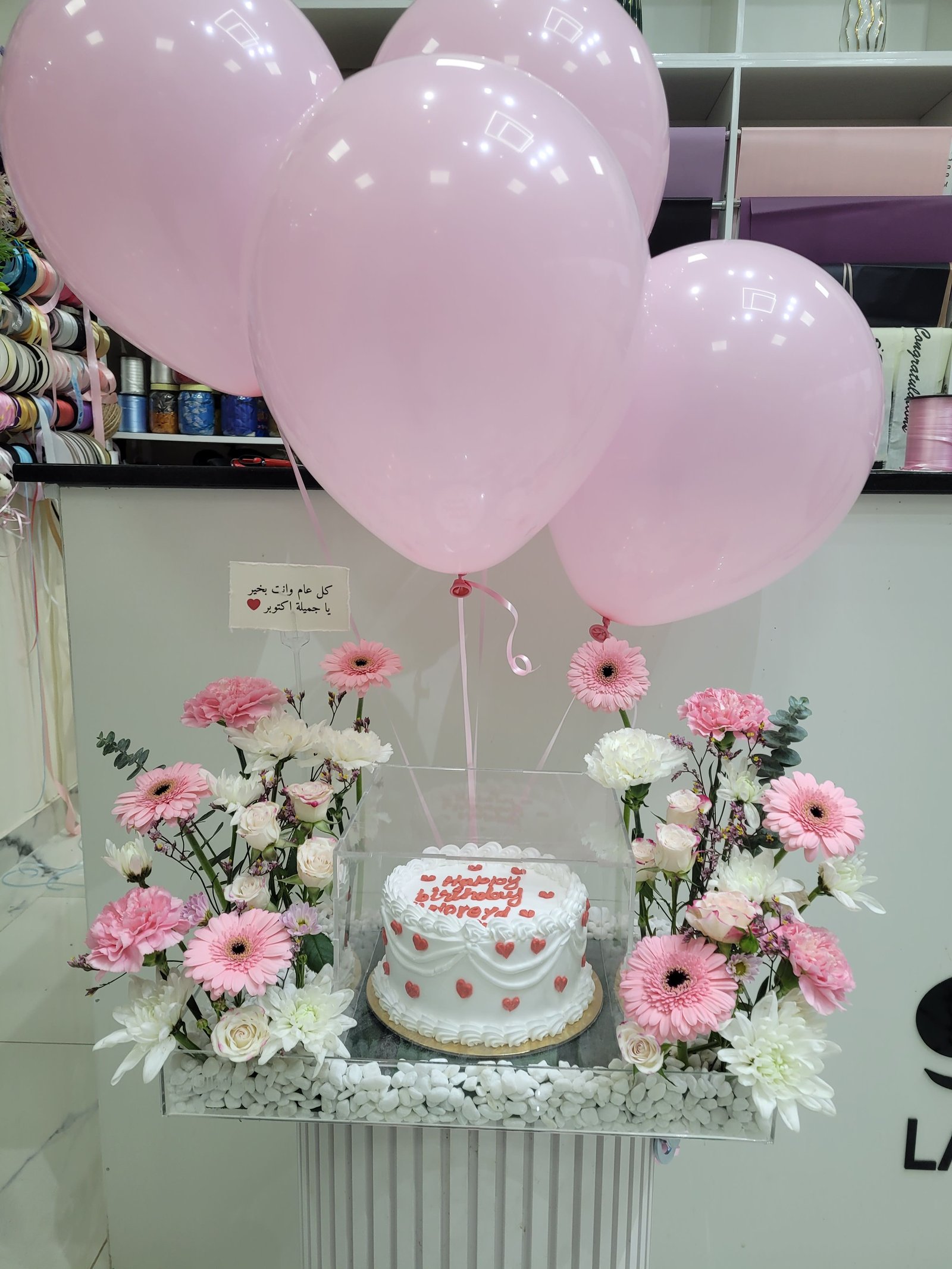كيك مع ورد وشموع و بالنونات
