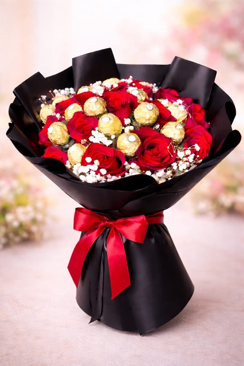 باقة ورد مع شوكلاته