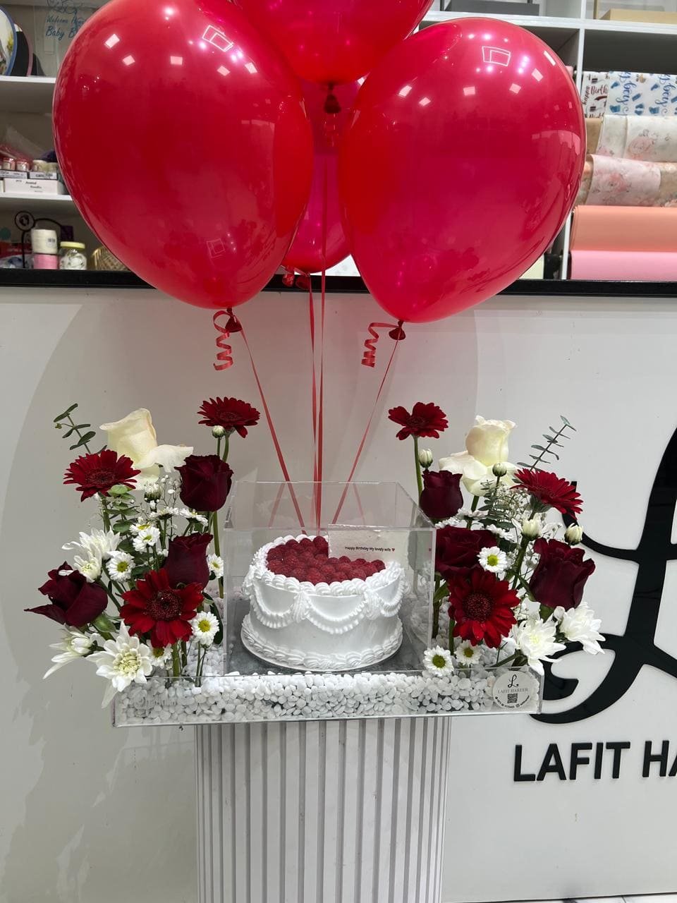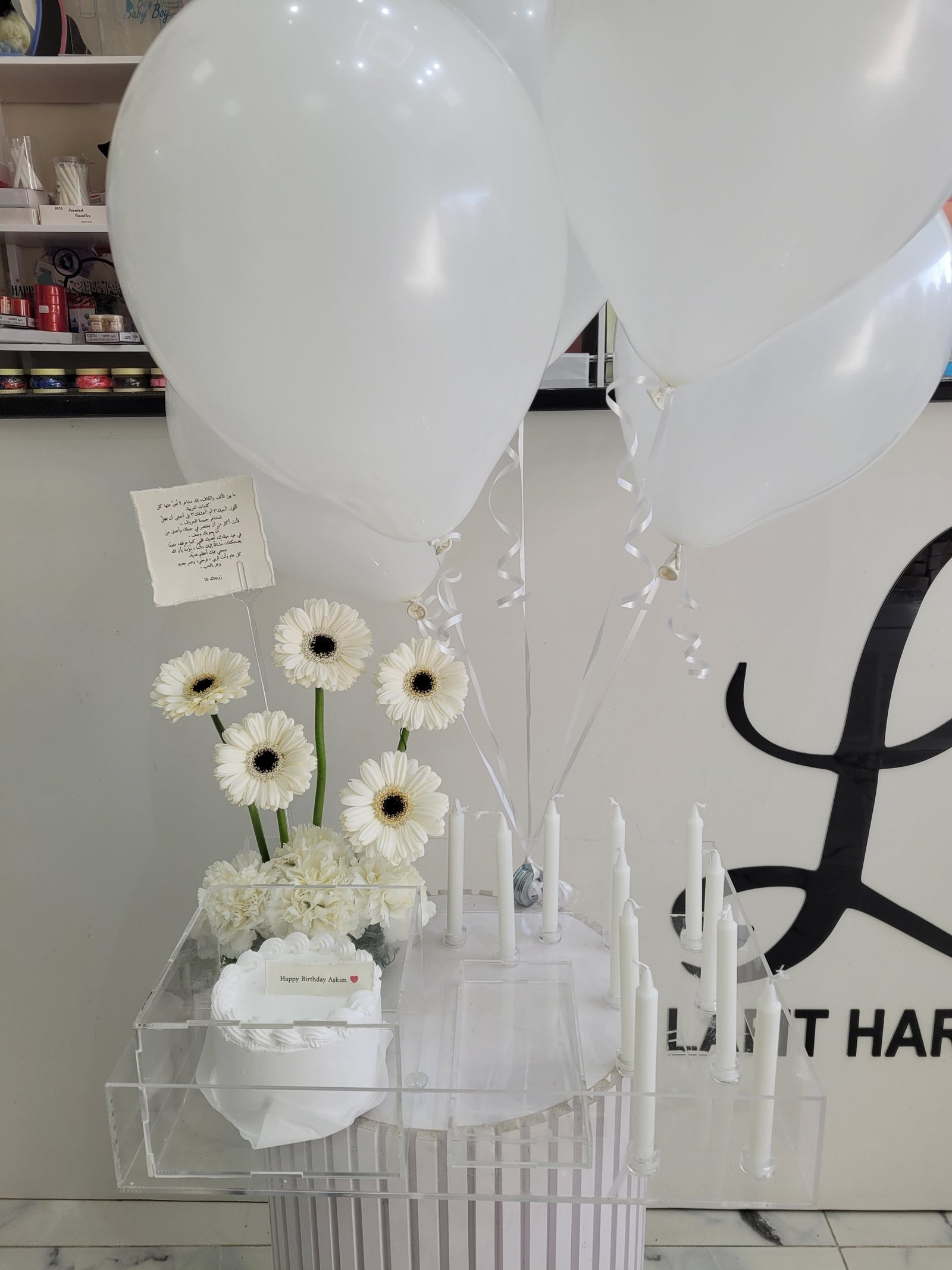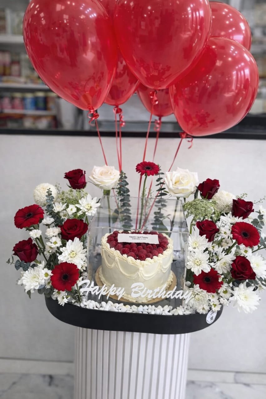 كيك مع ورد وشموع و بالنونات