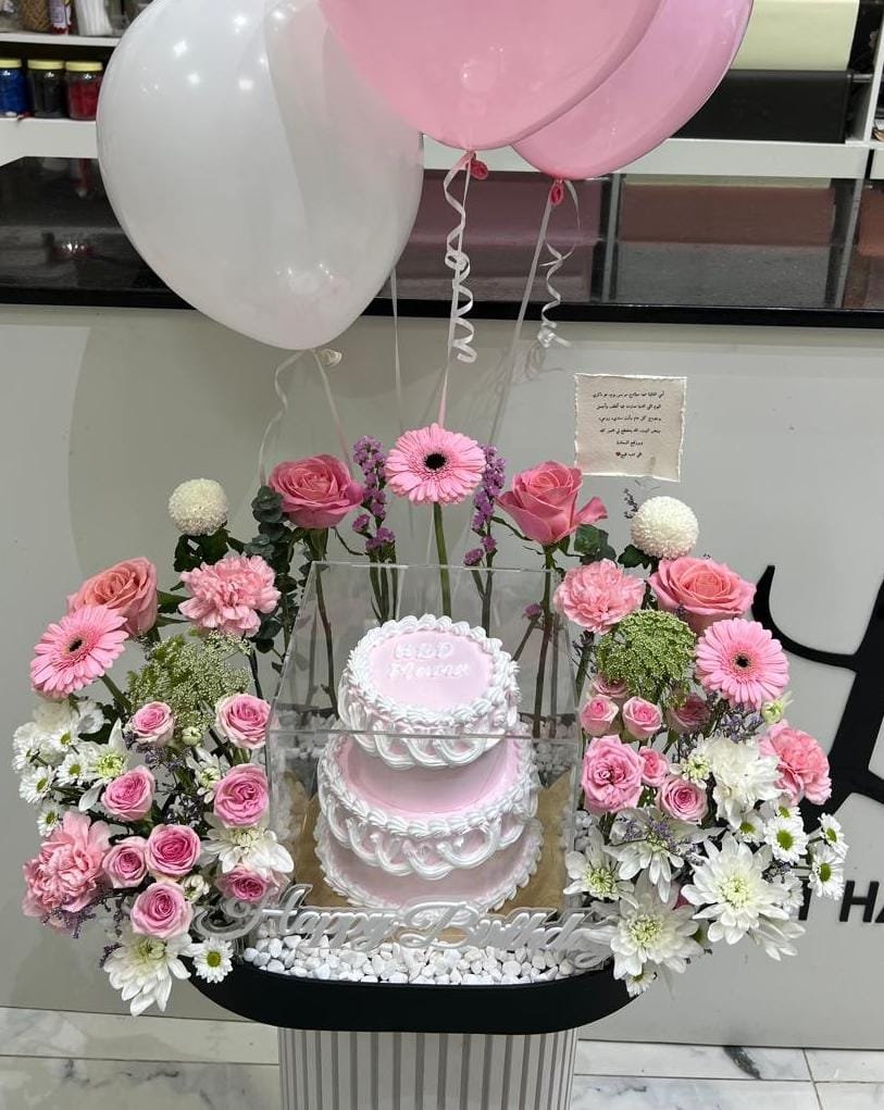 كيكه مع ورد وبالنونات